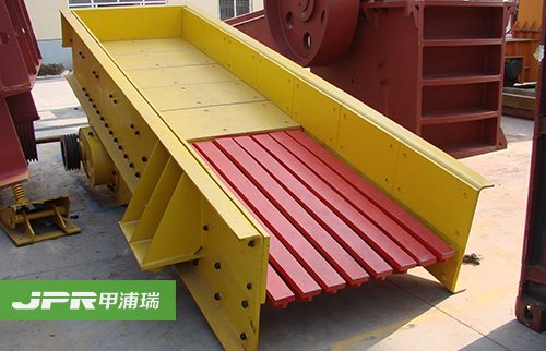 振動(dòng)給料機(jī)在砂石生產(chǎn)線中可為破碎機(jī)連續(xù)均勻地喂料避免破碎機(jī)受料口的堵塞。振動(dòng)給料機(jī)機(jī)是利用振動(dòng)器中的偏心塊旋轉(zhuǎn)產(chǎn)生離心力,使篩廂、振動(dòng)器等可動(dòng)部分作強(qiáng)制的連續(xù)的圓或近似圓的運(yùn)動(dòng)。物料則隨篩廂在傾斜的篩面上作連續(xù)的拋擲運(yùn)動(dòng),并連續(xù)均勻地將物料送至受料口內(nèi)。